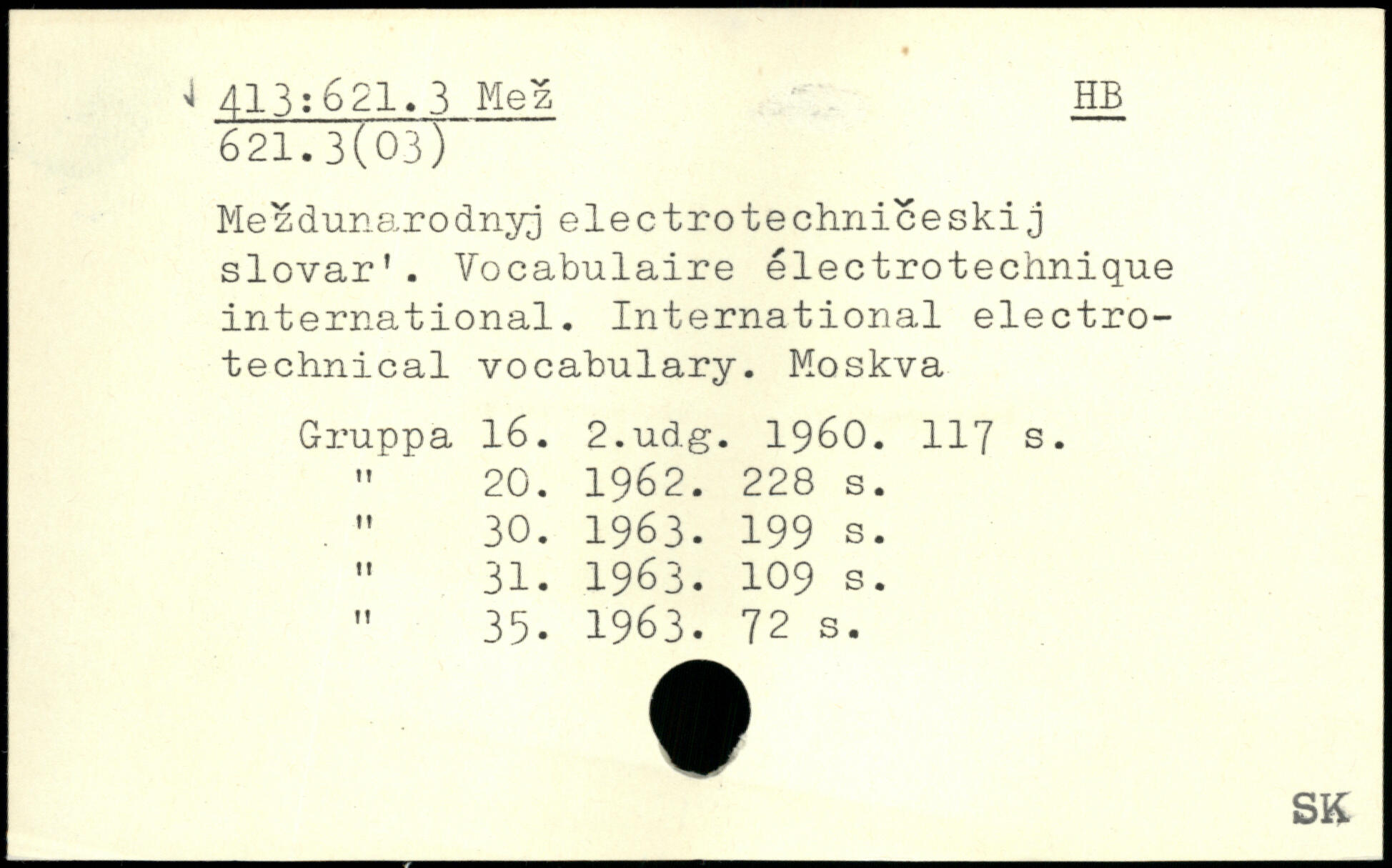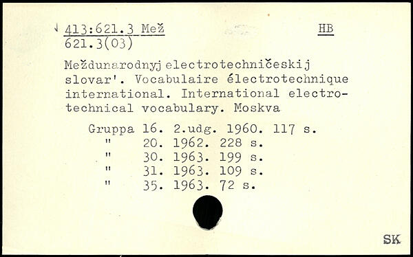 Mezdunarodnyjelectrotechniceskij slovar'. Vocabulaire electrotechnique international. International electrotechnical vocabulary. Moskva Gruppa 16.