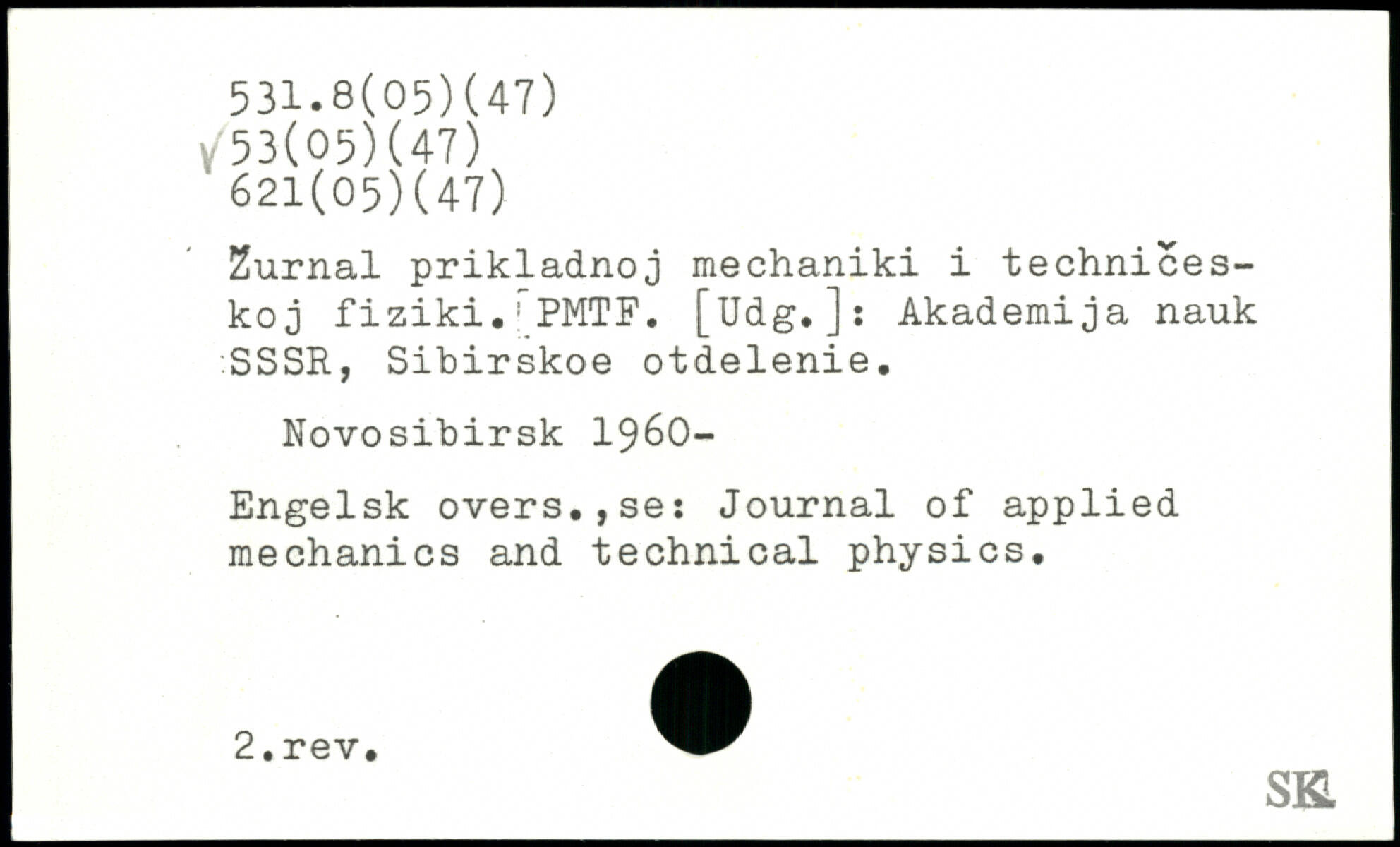 Zurnal prikladnoj mechaniki i technices-koj fiziki.rPMTF. [Udg.]s Akademija nauk SSSR, Sibirskoe otdelenie. Novosibirsk 1960- Engelsk overs.,se: Journal of applied mechanics and technical physics.