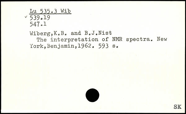 Wiberg,KeB, and B.J.Nist The interpretation of NMR spectra.