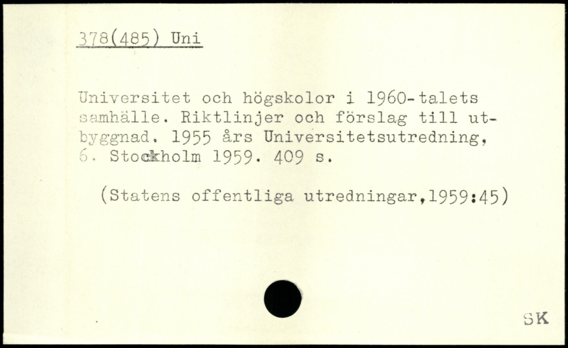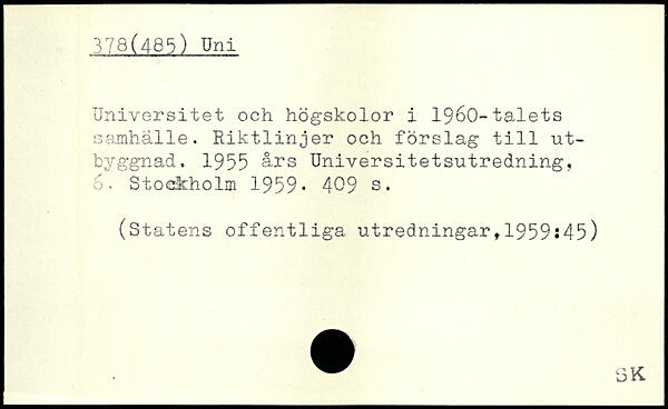 Universitet och högskolor i 1960-talets samhälle. Riktlinjer och förslag till ut-byggnad. 1955 års Universitetsutredning, 6.