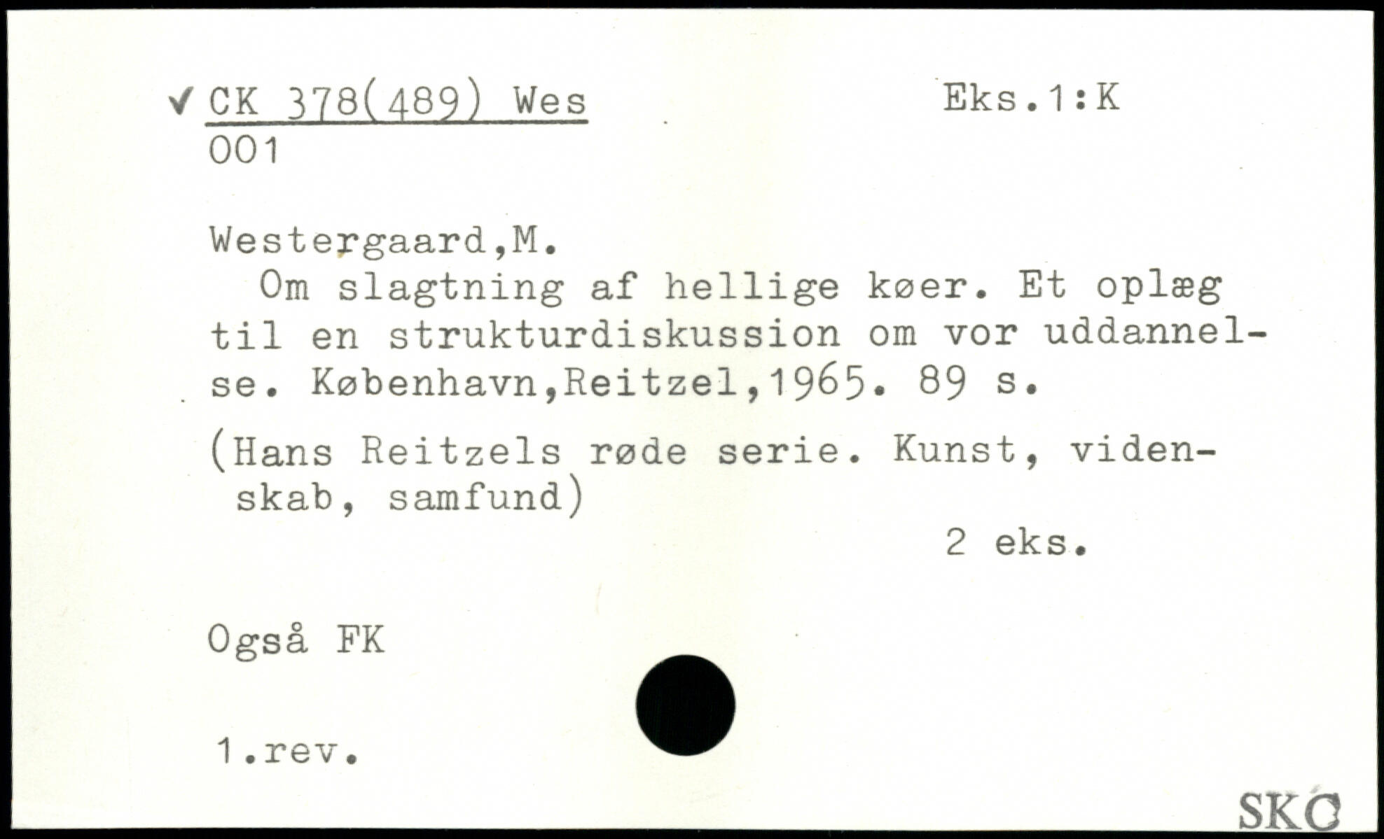 Om slagtning af hellige køer. Et oplæg til en strukturdiskussion om vor uddannelse. København,Reitzel,19^5.