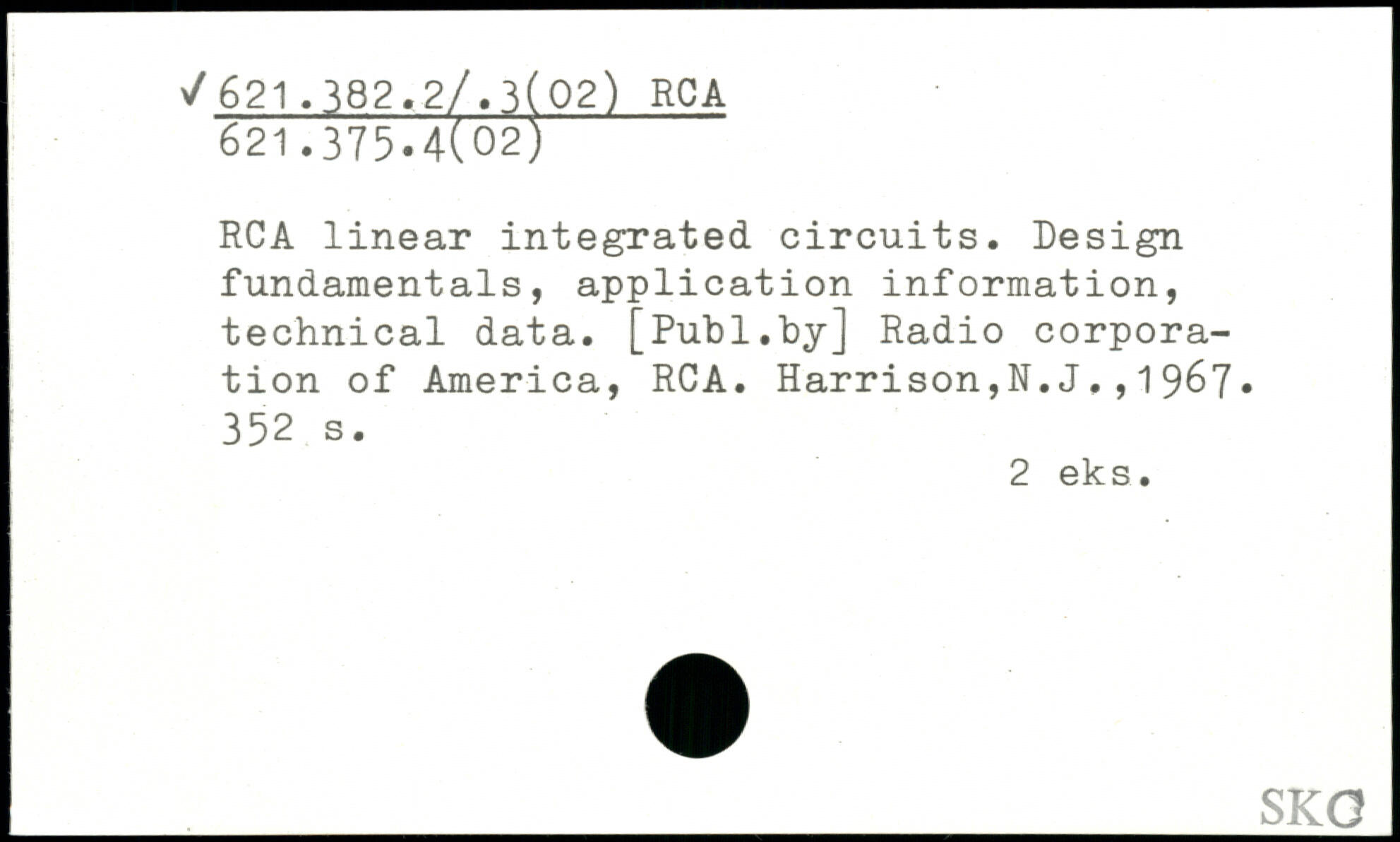 RCA linear integrated circuits. Design fundamentals, application information, technical data.