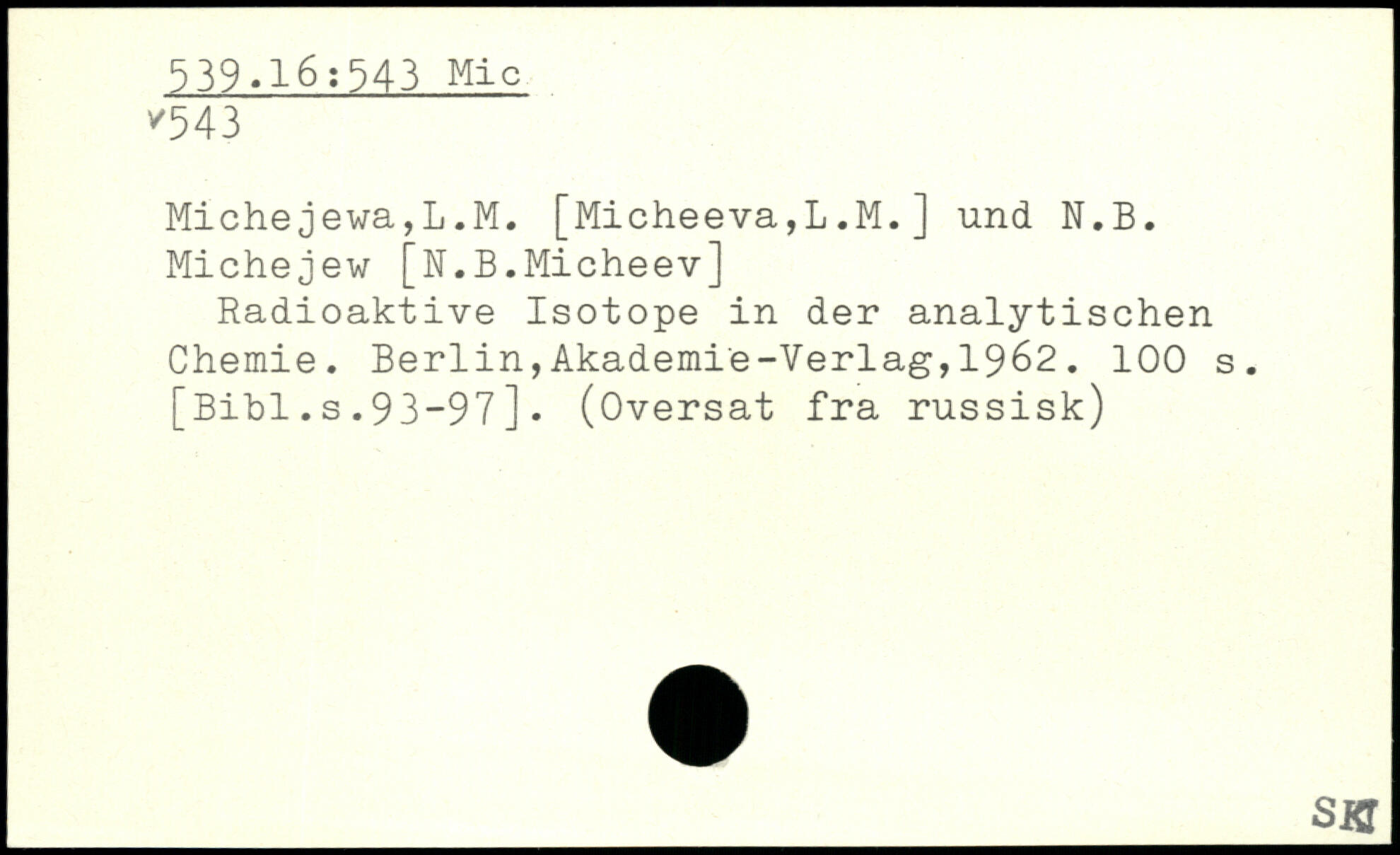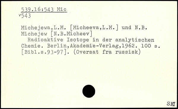 Michejewa,L.M. [Micheeva,L.M.] und N.B. Michejew [N.B.Micheev] Radioaktive Isotope in der analytischen Chemie.