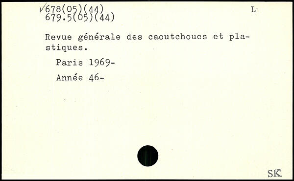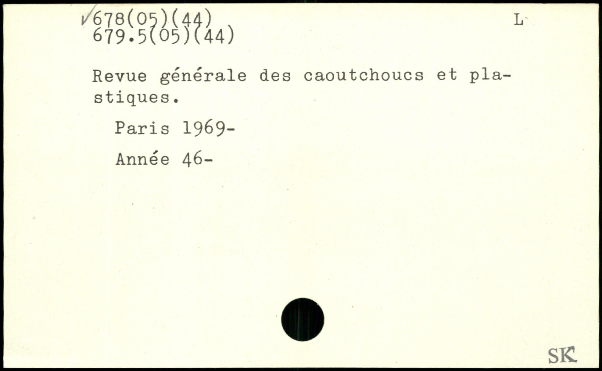Revue générale des caoutchoucs et plastiques. Paris 19^9- Année 46-