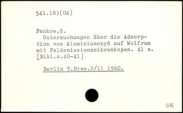Untersuchungen über die Adsorption von Aluminiumoxyd auf Wolfram mit Feldemissionsmikroskopen.