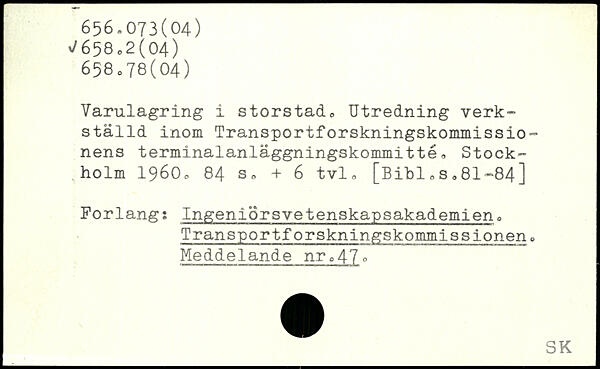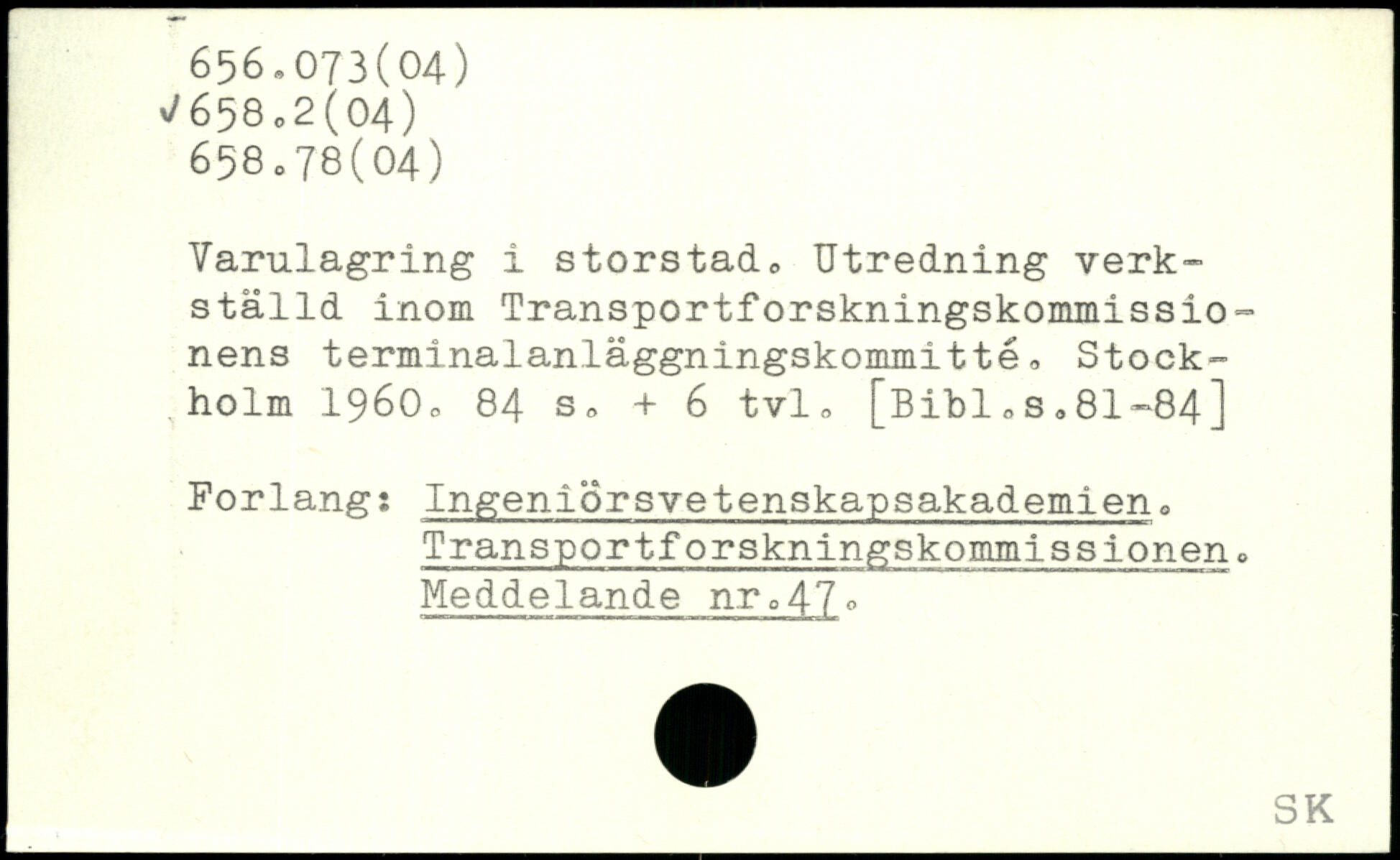 Varulagring i storstado Utredning verkställd inom Transportforskningskommissio-nens terminalanläggningskommitté
