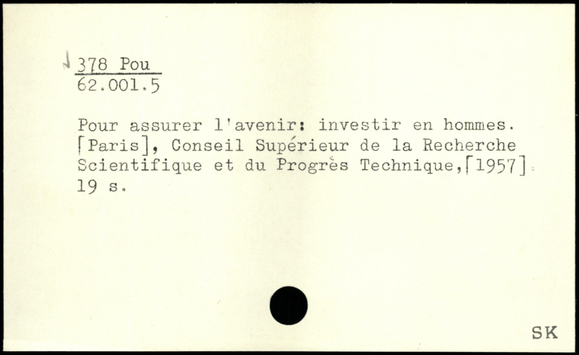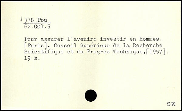 Pour assurer l'avenir: investir en hommes. [Paris], Conseil Supérieur de la Recherche Scientifique et du Progrès Technique,[1957]