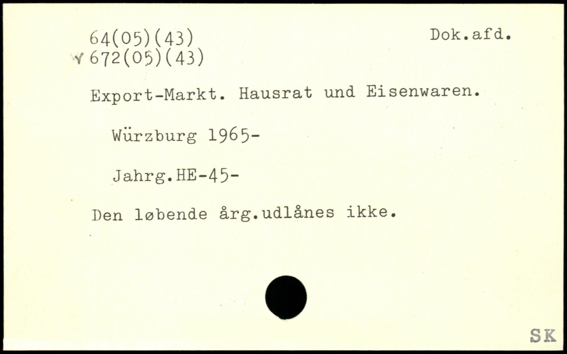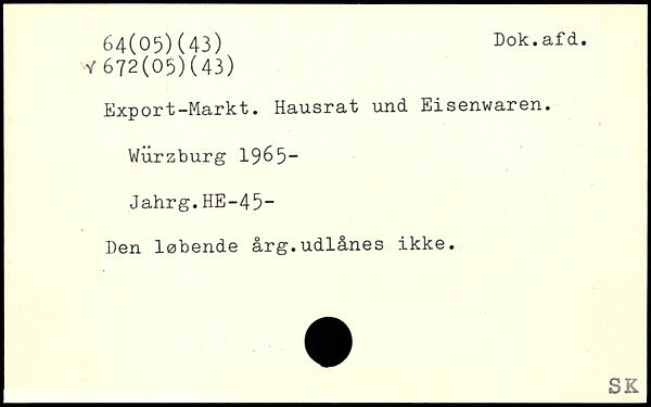 Export-Markt. Hausrat und Eisenwaren. Wurzburg 19&5- Jahrg.HE-45- Den løbende årg.udlånes ikke.