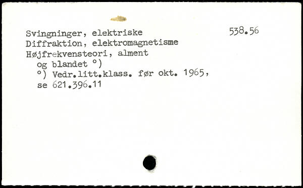 Svingninger, elektriske 533, 56 Diffraktion, elektromagnetisme Højfrekvensteori, alment og blandet .) .) Vedr.litt.klass. før okt. 19^5? se 621.396.11