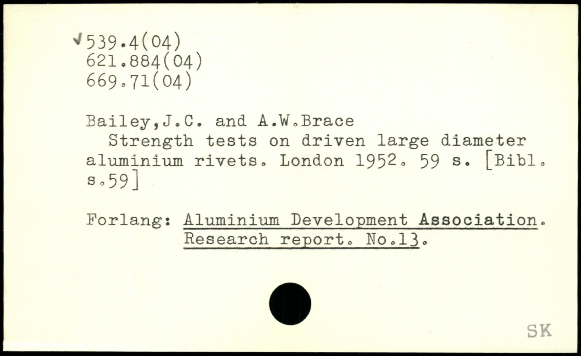ForsideBøgerStrength tests on driven …ameter aluminium rivets.