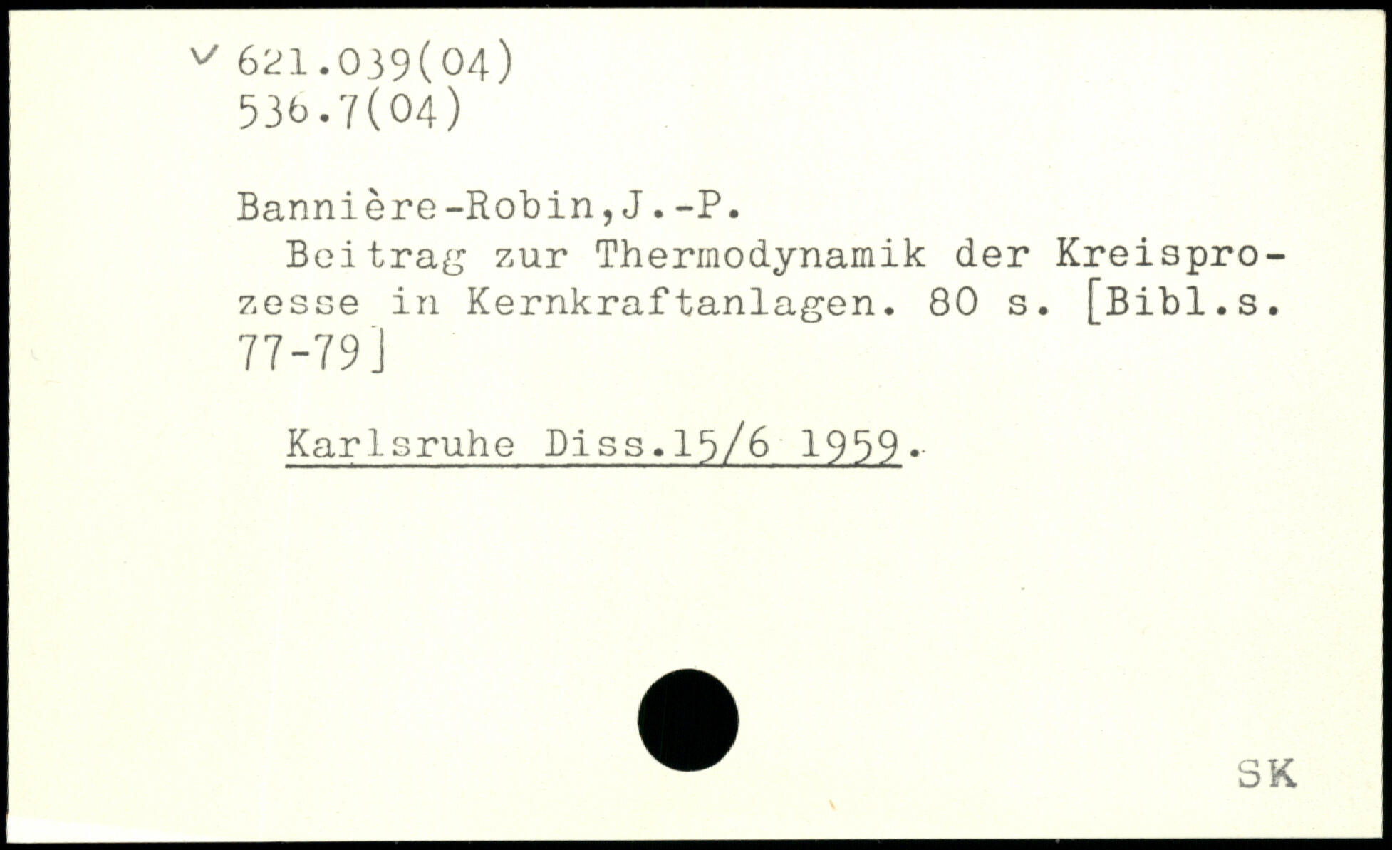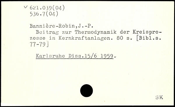 Bannière-Robin,J.-P. Beitrag zur Thermodynamik der Kreisprozesse in Kernkraftanlagen.