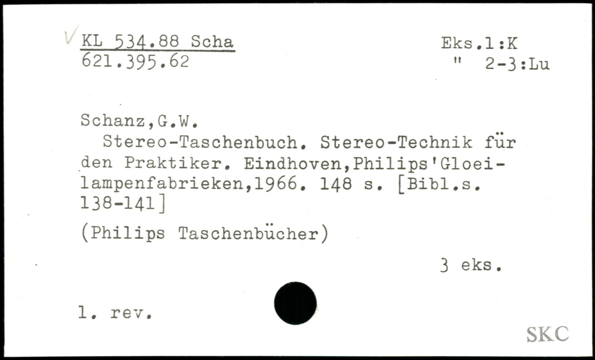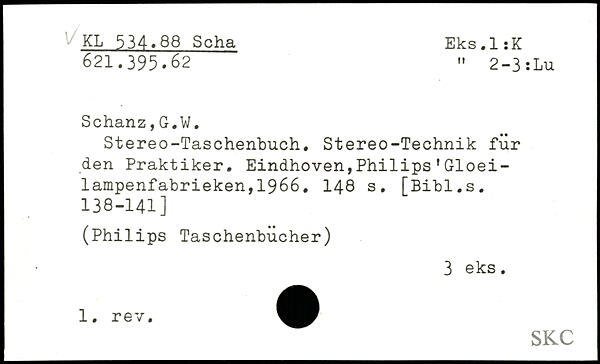 Stereo-Taschenbuch. Stereo-Technik für den Praktiker. Eindhoven,Philips'Gloei-lampenfabrieken,1966.