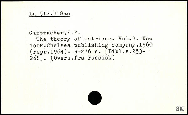 The theory of matrices.