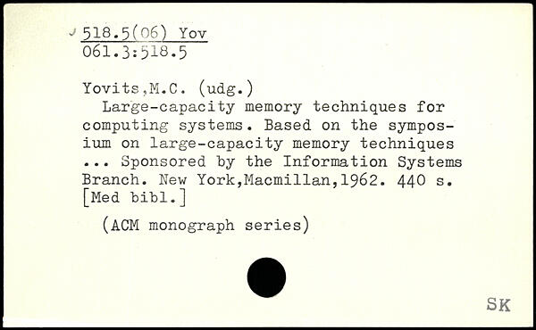 Large-capacity memory techniques for computing systems. Based on the symposium on large-capacity memory techniques ... Sponsored by the Information Systems Branch.