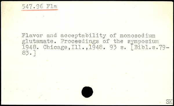 Flavor and acceptability of monosodium glutamate. Proceedings of the symposium 1948. Chicage,111.,1948.