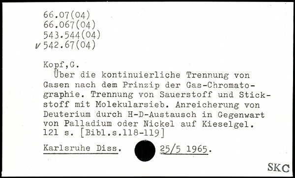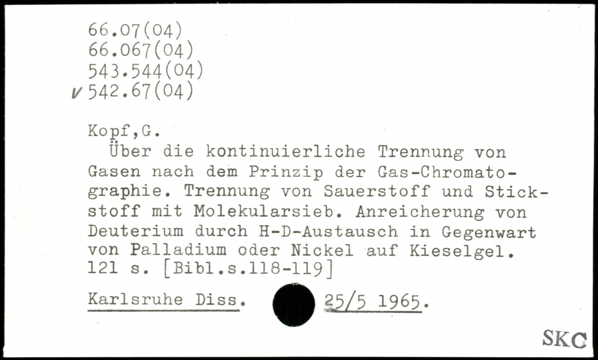 Über die kontinuierliche Trennung von Gasen nach dem Prinzip der Gas-Chromato-graphie. Trennung von Sauerstoff und Stickstoff mit Molekularsieb. Anreicherung von Deuterium durch H-D-Austausch in Gegenwart von Palladium oder Nickel auf Kieselgel.