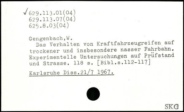 Das Verhalten von Kraftfahrzeugreifen auf trockener und insbesondere nasser Fahrbahn. Experimentelle Untersuchungen auf Prüfstand und Strasse.