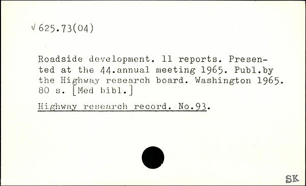 Roadside development. 11 reports. Presented at the 44,annual meeting 1965.