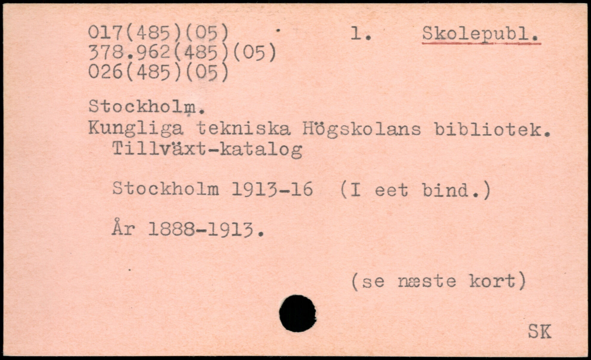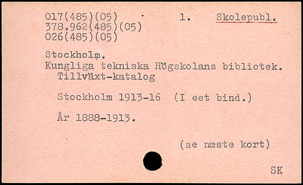 Kungliga tekniska H.ögskolans bibliotek. Til lv‘åxt -kat al o g