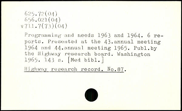 Programming and needs 1963 and 1964, 6 reports. Presented at the 43.annual meeting 1964 and 44.annual meeting 1965.