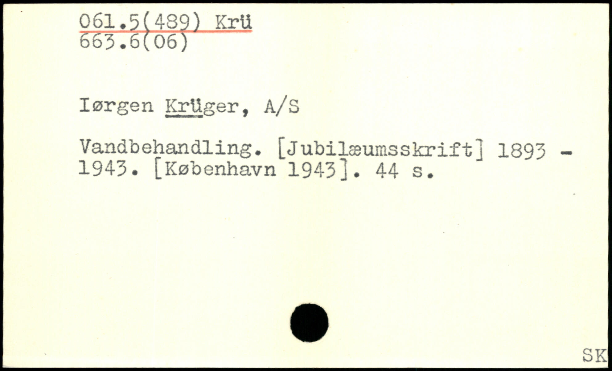 Iørgen Krüger, A/S Vandbehandling. [Jubilæumsskrift] 1893 -1943.
