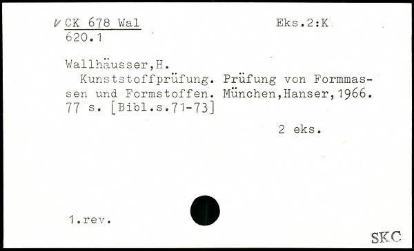 Kunststoffprüfung. Prüfung von Formmas-sen und Formstoffen.