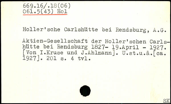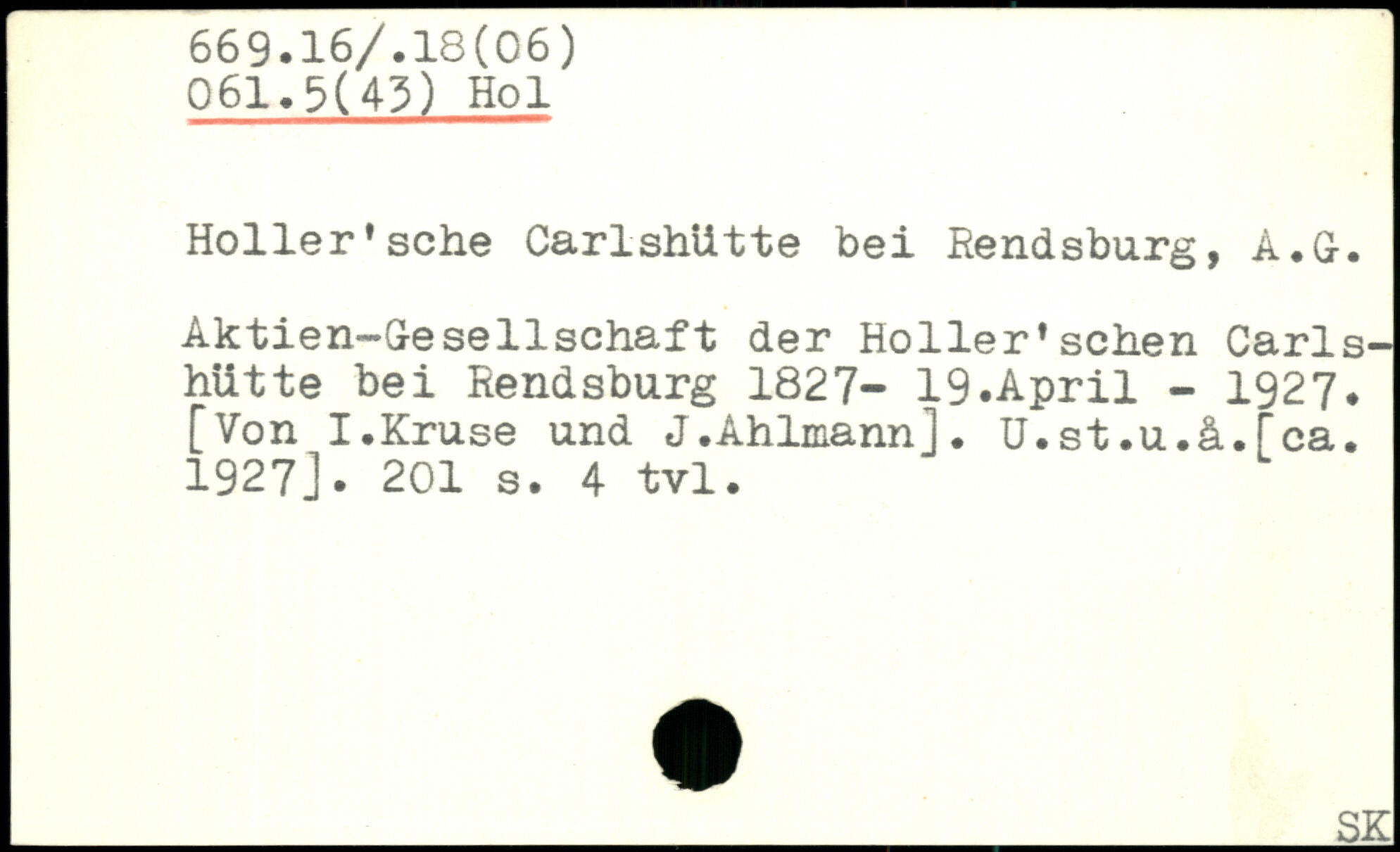 Holler’sehe Carlshütte bei Rendsburg, A.G. Aktien-OeSeilschaft der Holler’sehen Carlshütte bei Rendsburg 1827- 19.April - 1927. [Von I.Kruse und J.Ahlmann]. U.st.u.ä.fca. 1927J.