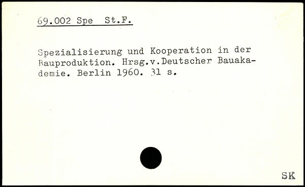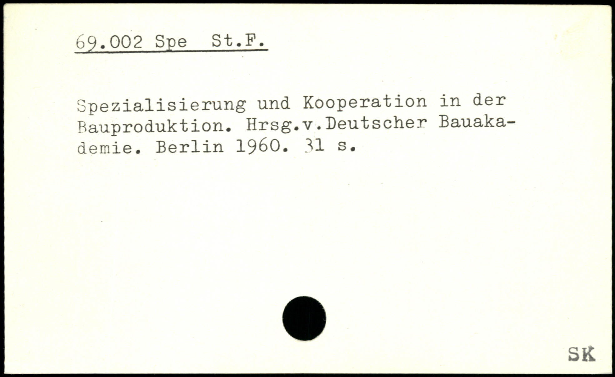 Spezialisierung und Kooperation in der Bauproduktion. Hrsg.v.Deutscher Bauakademie.