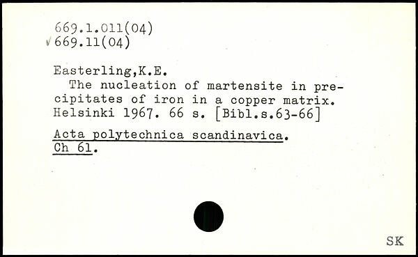 The nucleation of martensite in precipitates of iron in a copper matrix.