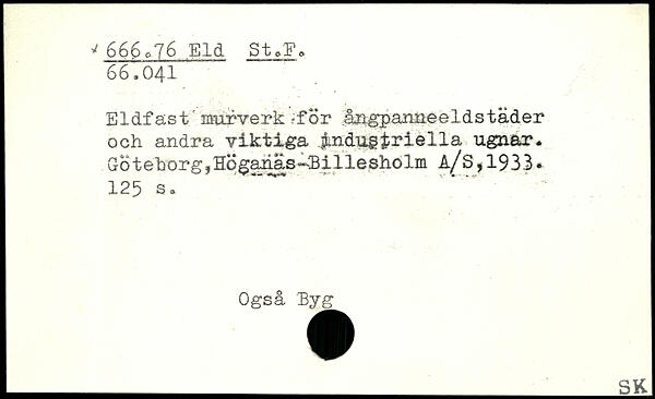 Eldfast imxrverk rför <ångpanneeldstäder och andra viktiga &ndu§£riella ugnar-GÖtehorg jHögajms^Billesholm å/S j 1933.