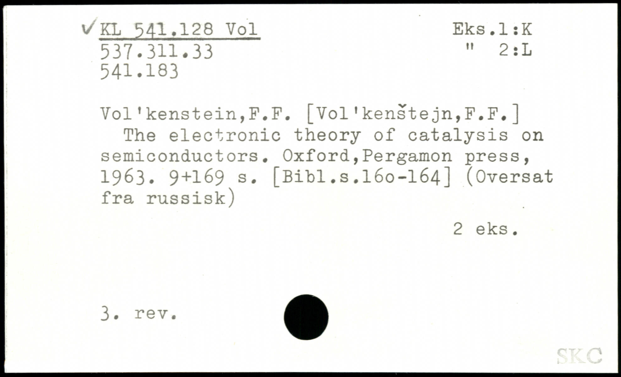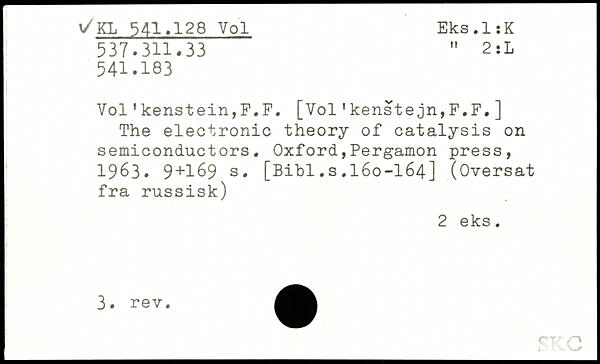 Vol'kenstein,F.F. [Vol'kenstejn,F.F.] The electronic theory of catalysis on semiconductors.
