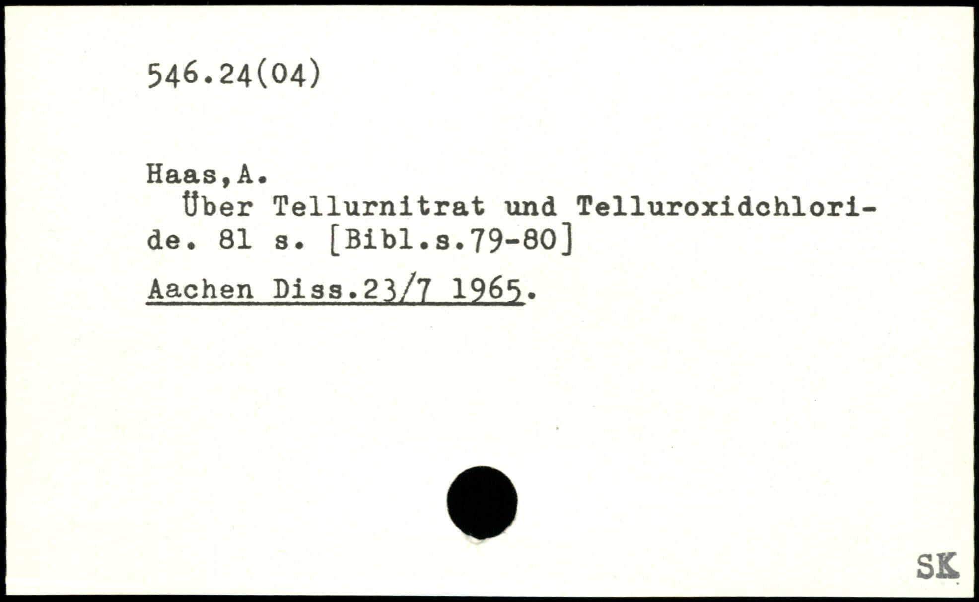 Haas f km über Tellurnitrat und Telluroxidchloride.