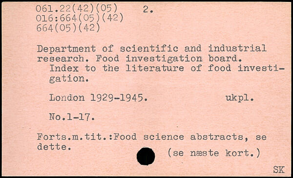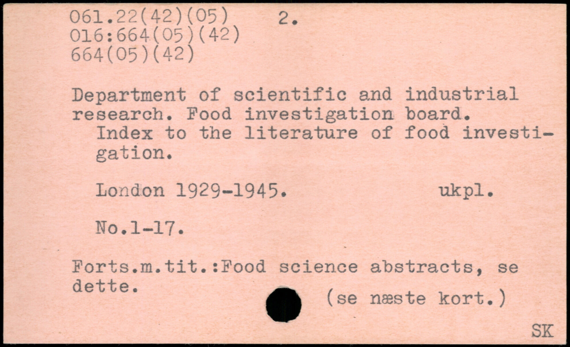 Department of scientific and industrial research. Pood investigation board. Index to the literature of food investigation.