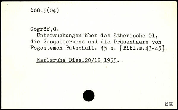 Untersuchungen über das ätherische 01, die Sesquiterpene und die Drüsenhaare von Pogostemon Patschuli.