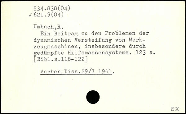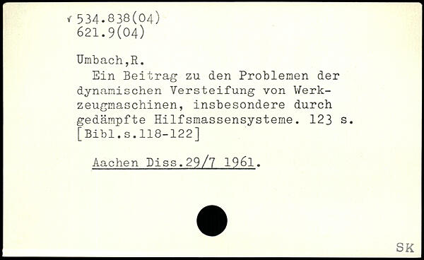 Ein Beitrag zu den Problemen der dynamischen Versteifung von Werkzeugmaschinen, insbesondere durch gedämpfte Hilfsmassensysteme.