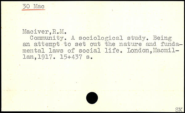 Community. A sociological study. Being an attempt to set out the nature and fundamental laws of social life.