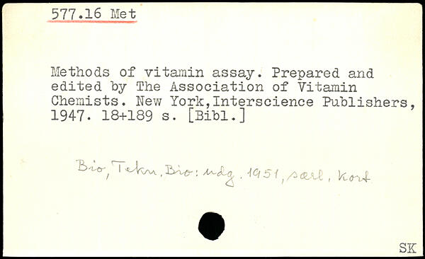 Methods of vitamin assay. Prepared and edited by The Association of Vitamin Chemists. New York,Interscience Publishers, I 1947.