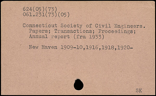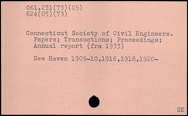 Connecticut Society of Civil Engineers. Papers; 'Transactions; Proceedings; Annual report (fra 1933) New Haven 1909-10,1916,1918,1920-