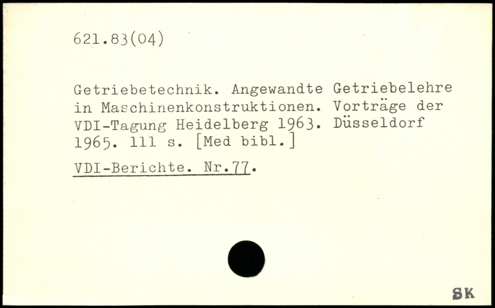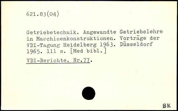 Getriebetechnik. Angewandte Getriebelehre in Maschinenkonstruktionen. Vorträge der VDI-Tagung Heidelberg 1963. Düsseldorf 1965.