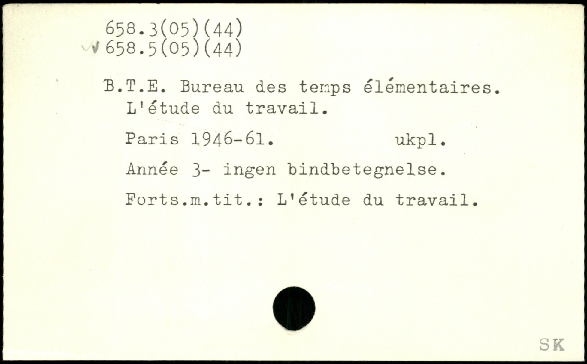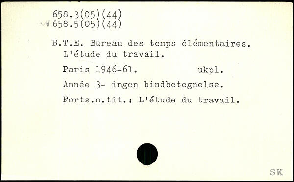 B.T.E. Bureau des temps élémentaires. L'étude du travail.