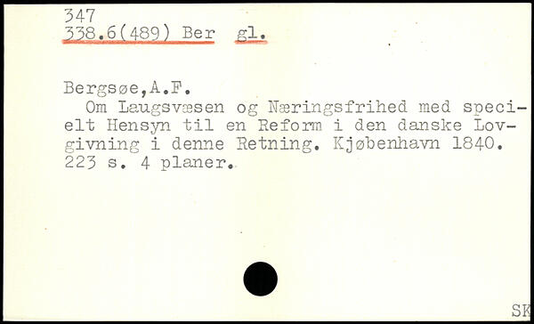Om Laugsvæsen og Næringsfrihed med specielt Hensyn til en Reform i den danske Lovgivning i denne Retning. Kjøbenhavn 1840.