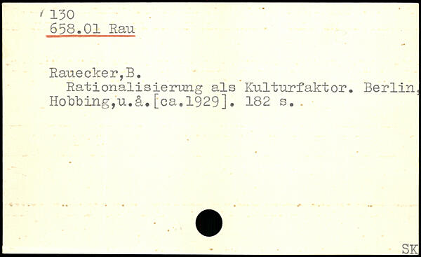 Rationalisierung als Kulturfaktor. Berlin, Hobbing,u.ä.[ca.1929].