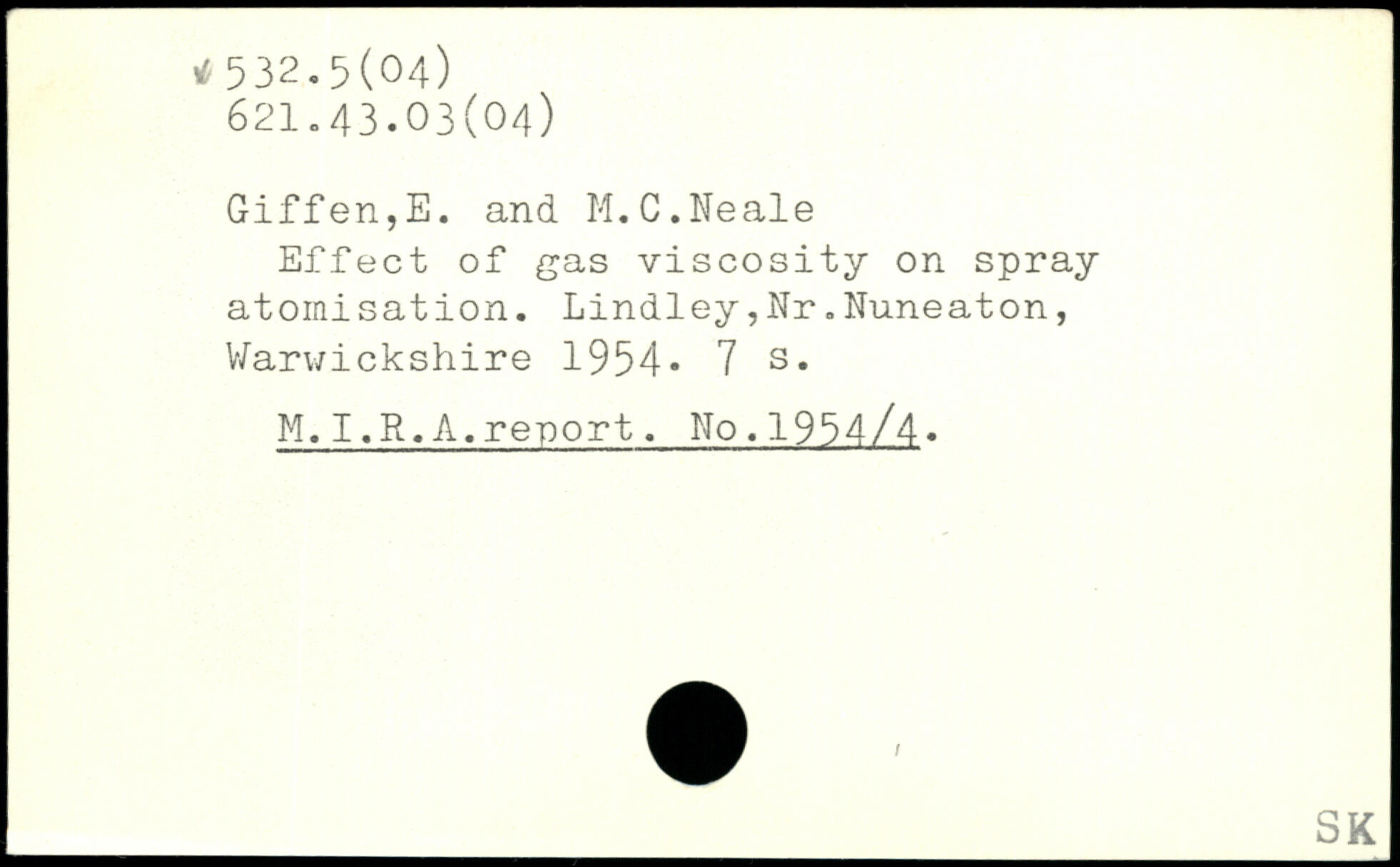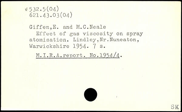 Effect of gas viscosity on spray atomisation. Lindley,Nr.Nuneaton, Warwickshire 1954.