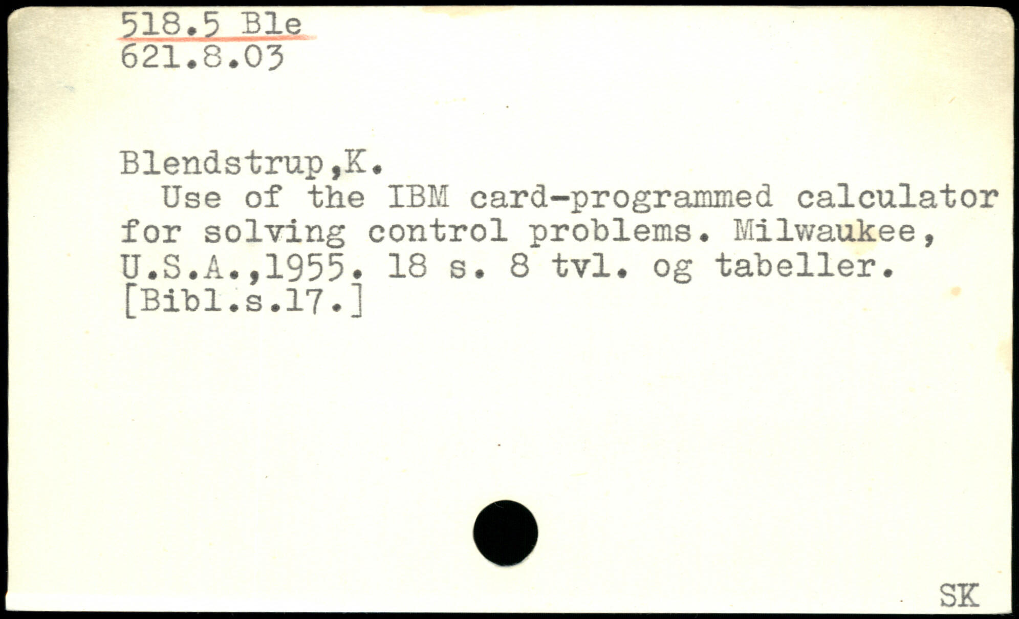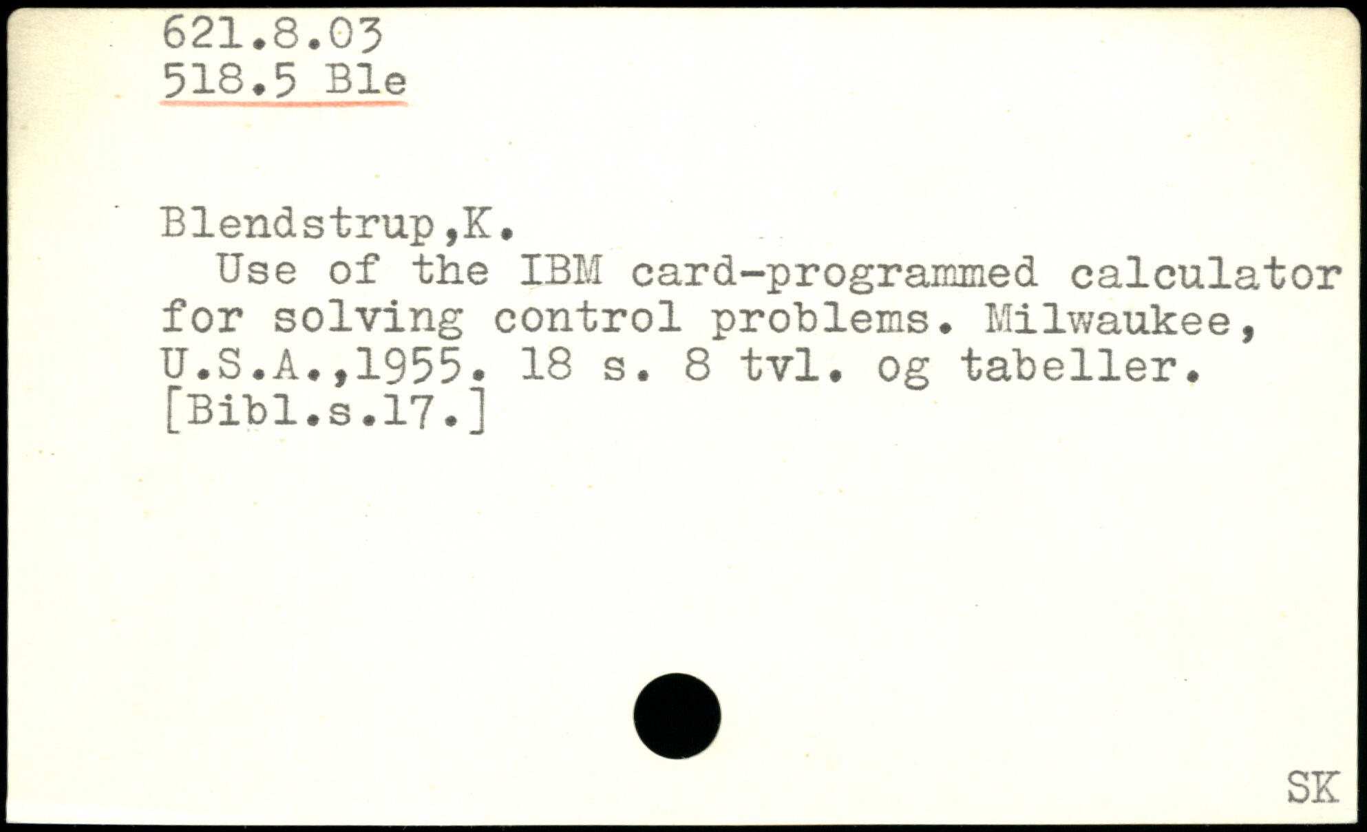 Use of the IBM card-programmed calculator for solving control problems.