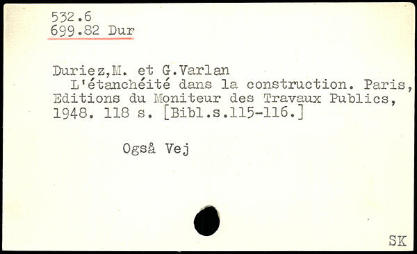 Duriez,M. et Gr.Varlan L'étanchéité dans la construction. Paris, Editions du Moniteur des Travaux Publics, 1948.