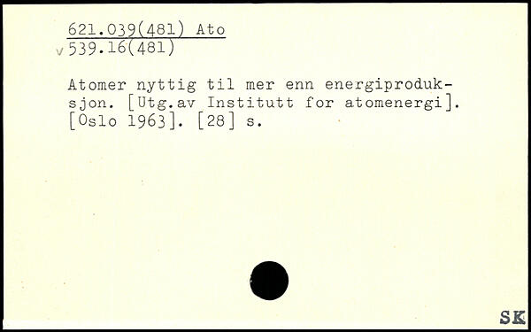 Atomer nyttig til mer enn energiprod.uk-s jon. [Utg. av Institutt for atomenergi],