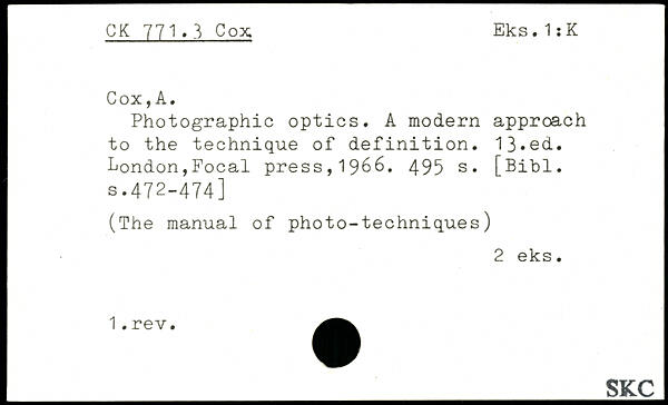 Photographie optics. A modern approach to the technique of definition. 13-ed. London,Focal press,1^66.