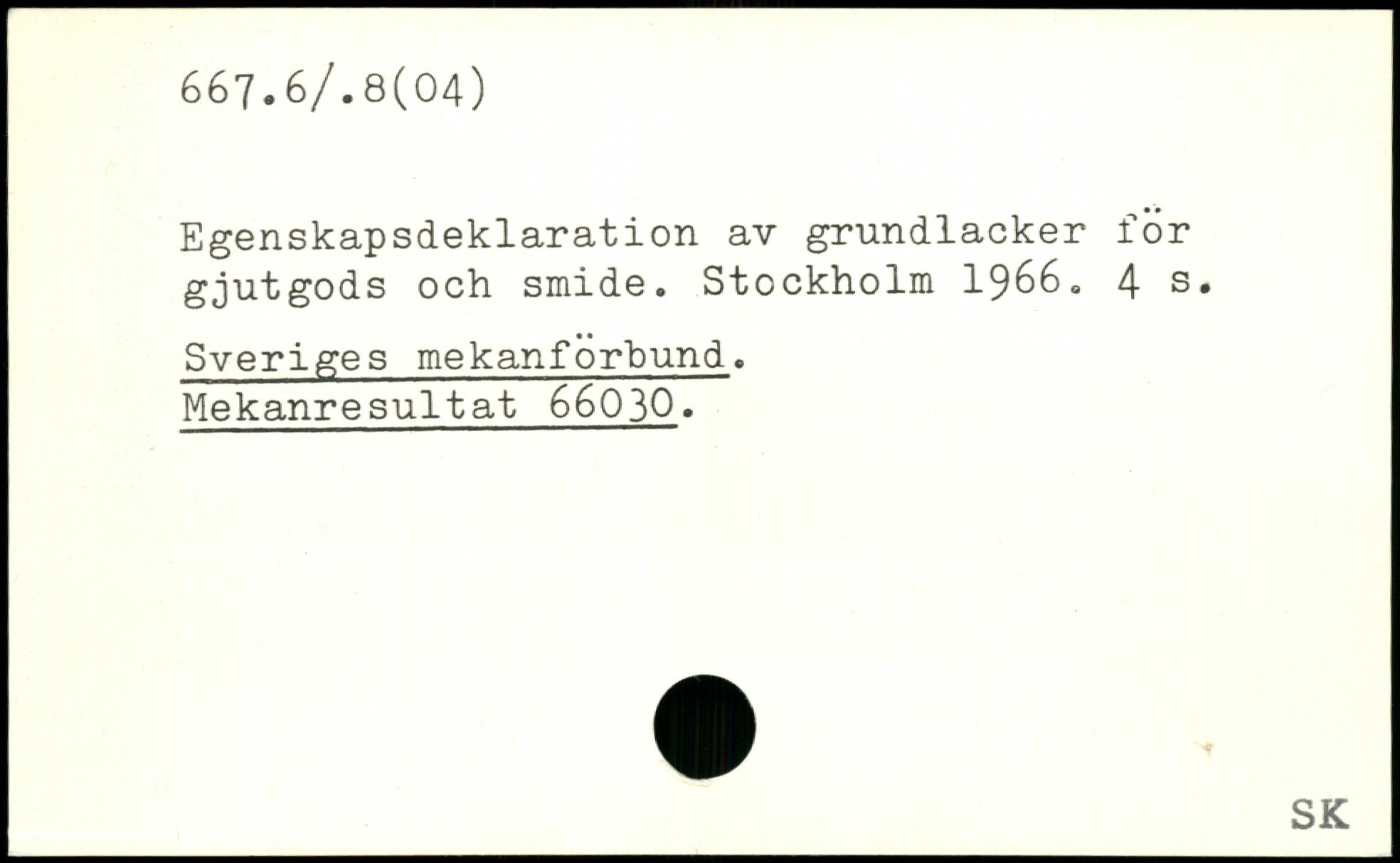 Egenskapsdeklaration av grundlacker för gjutgods och smide.
