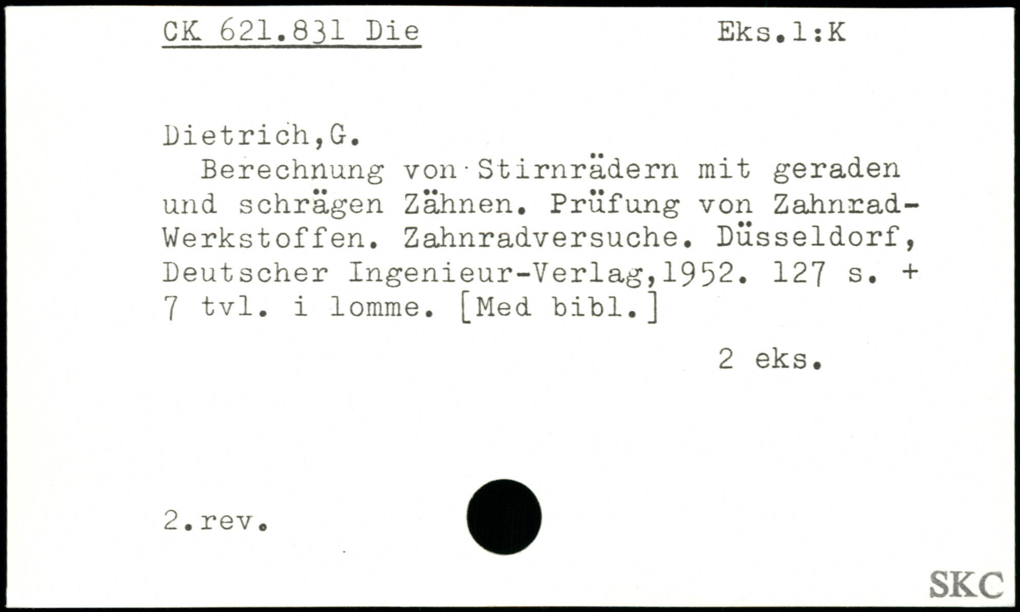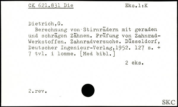Berechnung von.Stirnrädern mit geraden und schrägen Zähnen. Prüfung von Zahnrad-Werkstoffen. Zahnradversuche.