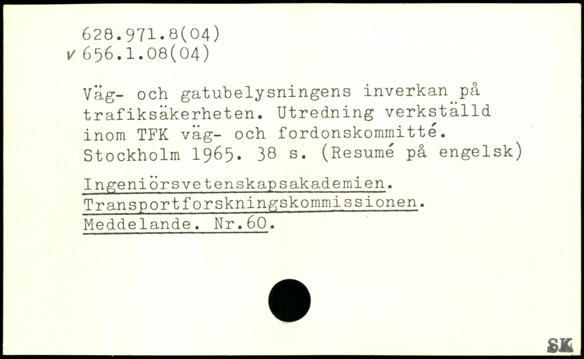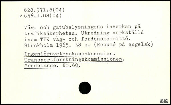 väg- och gatubelysningens inverkan_på trafiksäkerheten. Utredning verkställd inom TFK väg- och fordonskommitté.